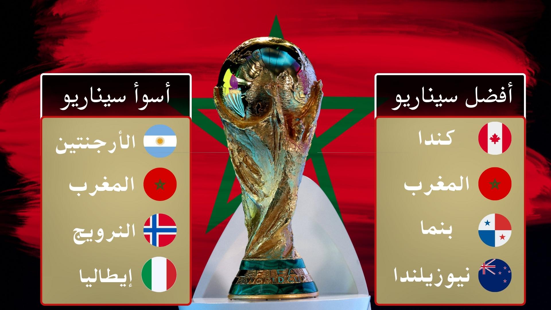 المجموعة المتوقعة: الأرجنتين – المغرب – النرويج – إيطاليا (أو منتخب أوروبي من الملحق).