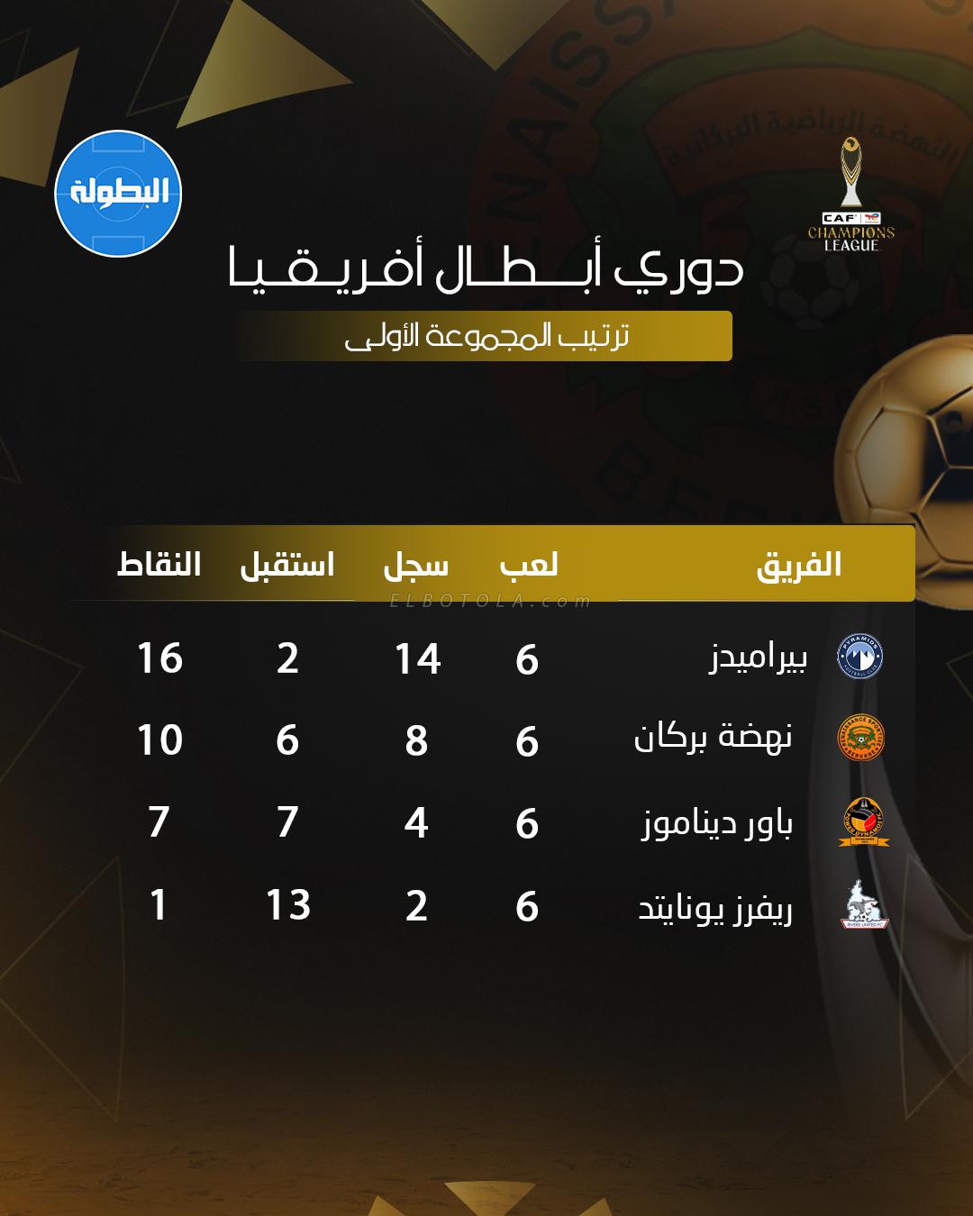 في المقابل، تأهل بيراميدز إلى الدور نفسه بعدما تصدر المجموعة الأولى برصيد 16 نقطة، محققاً خمسة انتصارات وتعادلاً واحداً دون أي هزيمة، مع تسجيل 14 هدفاً مقابل استقبال شباكه هدفين فقط، ليؤكد قوته الهجومية خلال هذا الدور. وضمت مجموعته كلاً من نهضة بركان وباور ديناموس الزامبي وريفرز يونايتد النيجيري.