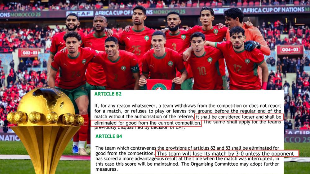تجدر الإشارة، إلى أن لجنة الاستئناف في "الكاف"، قضت باعتبار المنتخب السنغالي منسحبا في نهائي كأس أفريقيا، وتأكيد هزيمته بنتيجة 3-0، مقابل إعلان المنتخب المغربي بطلا لـ"الكان".