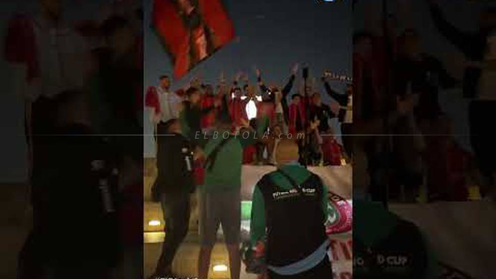 لاعبو المنتخب المغربي يشاركون فرحة التأهل إلى نصف نهائي كأس العرب مع الجماهير المغربية
