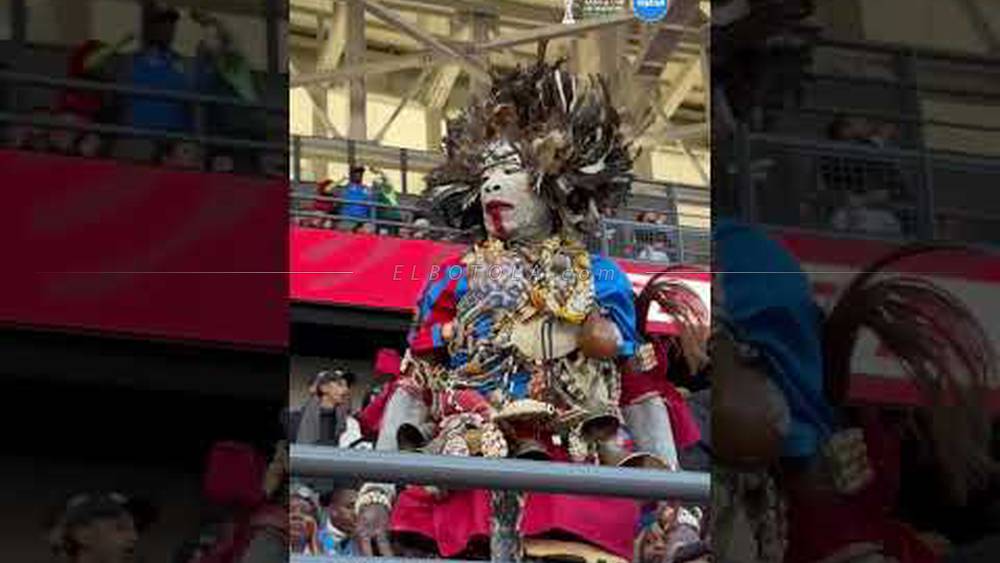 هوية إفريقية حاضرة بقوة.. مشجع كونغولي يخطف الأنظار بلباسه التقليدي أمام الجزائر 🇨🇩 🇩🇿